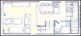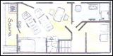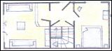 Das Dachgeschoß ist als Galerie ausgeführt und beinhaltet ein Doppelbett (mit zwei weiteren ausziehbaren Zusatzbetten) und einen Kleiderschrank. |